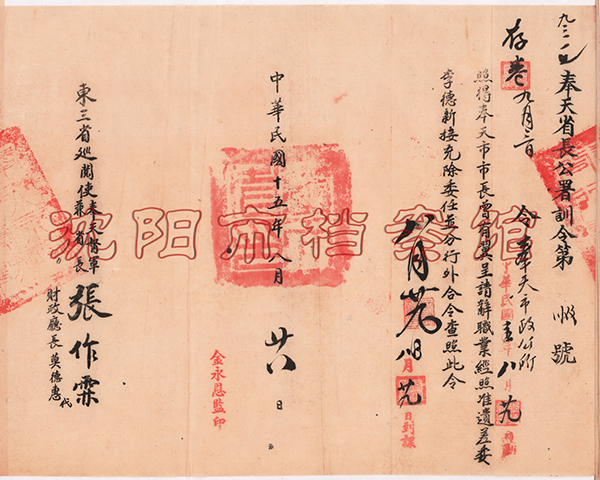 张作霖主政东北后,沈阳成为奉系军阀的督府。1923年4月30日,时任东三省巡阅使、奉天督军兼省长的张作霖批准发布了奉天省长公署令,委任曾有翼为奉天市(1929年4月12日奉天市改称沈阳市)市长。曾有翼等人上任后开始计划市政要事,1923年5月1日成立奉天市政公所筹备处,同年8月4日改称奉天市政公所,使沈阳地区在历史上第一次出现了“市”的建制。关于第一任市长曾有翼卸任、第二任市长李德新接任的时间,目前存在多个版本,说法不一,据书籍、文章及互联网上的有关信息显示有几种说法,如1926年6月、1926年9月、1926年11月无具体日期,还有1927年3月14日等等。那么确切时间究竟是什么时候?沈阳市档案馆馆藏的几份历史档案,给出了准确答案,批准时间为1926年8月28日,还原了历史原貌。