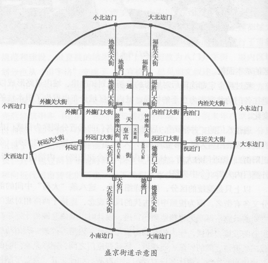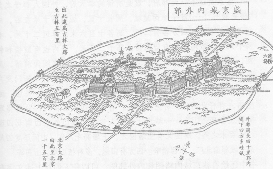 其三,扩大了盛京(沈阳)城市区域面积。原有的盛京(沈阳)城区,只限于方城之内。修筑“边墙”之后,盛京(沈阳)城区面积向外扩展了约6倍,从而形成两部分:方城之中的“内城”;“边墙”与方城之间的“外城”(关厢)。