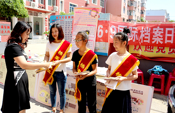为纪念第十个国际档案日,6月8日,市档案局与沈北新区档案局以“档案——我们共同的记忆”为主题,在沈北新区新兴社区联合开展了档案进社区宣传活动。