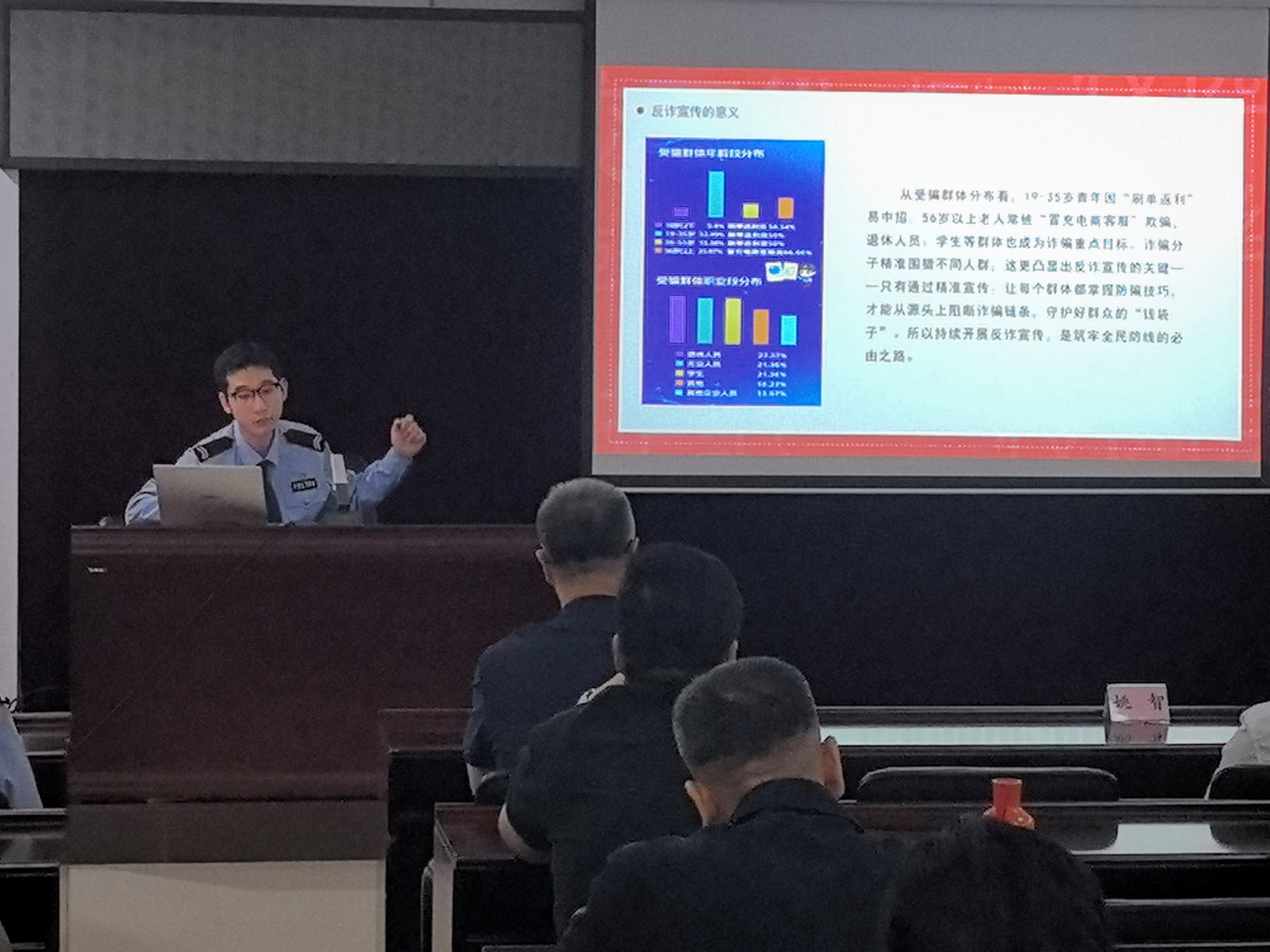 本次讲座邀请沈阳市公安局公共交通治安管理分局刑事警察大队队长马浩迪、警官王誉博主讲。两位警官凭借其丰富的刑侦实战经验,结合近期高发的真实案例,深入浅出地剖析了刷单返利、虚假投资、冒充公检法、网络贷款、“杀猪盘”等常见诈骗手法的作案套路和识别关键,从防范角度出发,系统讲解了个人信息保护、可疑信息核实、紧急止付流程等实用技巧,并提醒大家务必牢记“不听、不信、不转账”原则,筑牢心理防线。专题讲座内容翔实、语言生动、重点突出,极具警示性和教育意义。与会同志纷纷表示对电信网络诈骗有了更为清醒和深刻的认识,掌握了必要的防范技能,受益匪浅。